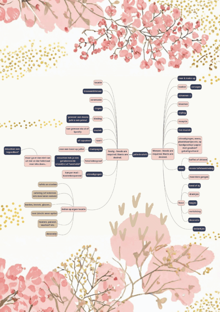 π Yes, jullie gaan trouwen! Het Grote Plannen kan beginnen… Bepaal je needs & wants aan de hand van deze handige mindmap!