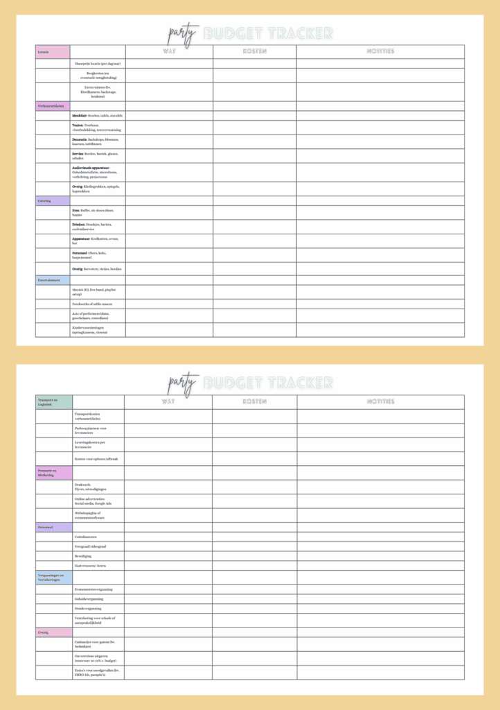 π«°πΌ Yesss, tijd voor een feestje! Helaas wordt je budget vaker overschreden dan niet… Hou alles netjes bij in deze party budget tracker. 3 pagina’s plus extra tips, direct beschikbaar!