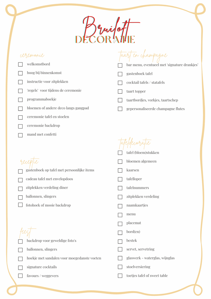 ππΌ Een handige checklist voor jouw evenement. 4 bladzijden met to-do’s, een extra pagina voor notities, Γ©n een printbare pagina in zwart-wit om je printer te ontlasten π